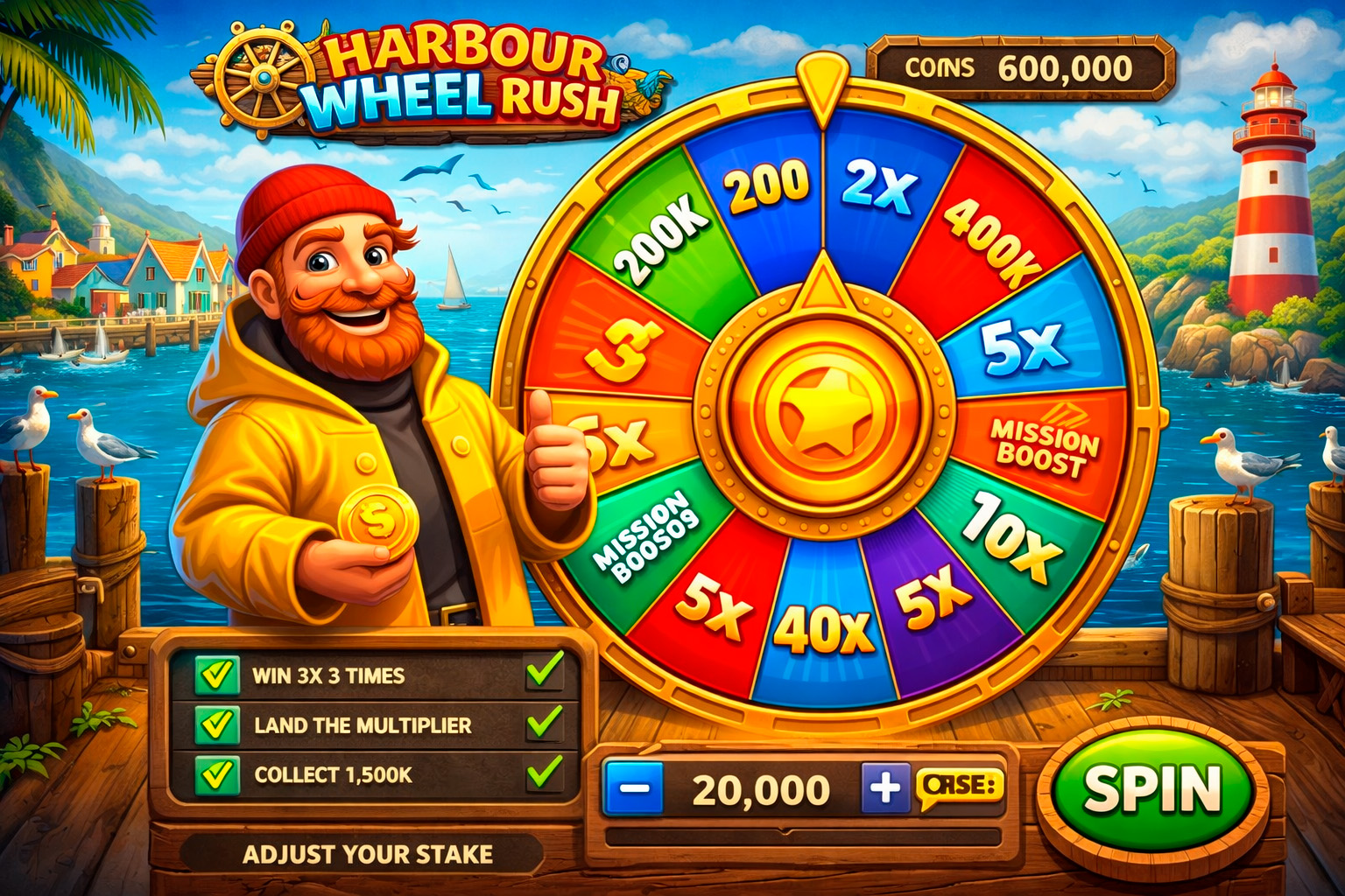 Spin a 12-sector wheel with mission objectives, streak effects, and optional risk mode.